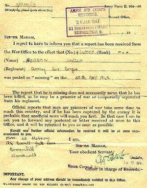 This story was submitted to the People’s War site by Bill Ross of the ‘Action Desk — Sheffield’ Team on behalf of Walter Hobson, and has been added to the site with his permission. Mr. Hobson fully understands the site's terms and conditions.