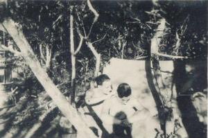 Pt Ray Bolton and Pt Johnny Walker looking for ticks! June 1944