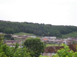 July 2005: Whitehaven, Cumbria. A view across the Valley towards ‘The Brows’, Arrowthwaite, Kells, Whitehaven, Cumbria. On 14 October 1943 an Avro Anson training aircraft crashed on this hillside killing all five crewmen. (The woodland was planted after World War Two)