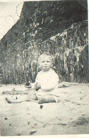 HAVING been born in a Cornish cottage on 25 April 1940, my direct experience of the war has to be understood through the eyes of a child, a boy child. The b/w photograph was taken by my mother, Nina Francis P***** (nee Luker) with her little Brownie Box camera that I later inherited. It shows me on the sand of Porth Beach, just north of Newquay, near the sea-wall in 1941. I guess I look quite healthy despite the war, and the fact that the cottage (Greenbank Cottage next to the Greenbank Hotel where Royal Canadian Airforce pilots were billitted) had no electricity inside nor running water - a tap outside was the only water supply.
