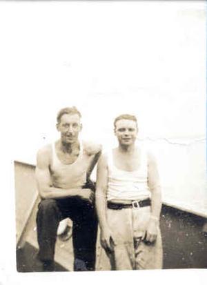 Archie and his friend Lofty on the corvette "Dittany" in 1944
