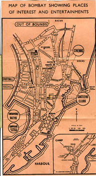 Map of Bombay showing places of interest and entertainment. This was enclosed in the 'welcome to Bombay' booklet that my Father received in 1943.