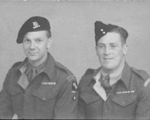 Photograph of cousins Eric and Jack taken on the 12th October 1945 at Northampton during their first leave together after the war in Europe ended.