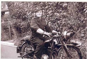 About six months after I started, another Dispatch Rider was needed, as there were lots of notices, gas masks, and baby's gas masks to take around the West Wight. (The babies’ gas masks were quite large and a lot of the babies were frightened of them. We had to show the mothers how to use them, but of course we hoped they wouldn't be needed.) My colleague, a friend named Joan, was given the job of riding the other motorcycle, an Ariel. This was rather larger than the Coventry Eagle, so we decided she would learn on the smaller bike. I gave her the same instructions as I had. At the bottom of Queens Road, Joan got over the bike with her feet still on the ground. She started it up, turned up the throttle, but let the clutch out too quick. The bike set off on its own and went into the ditch outside the Conservative Club, with Joan still standing with her legs apart wondering where her machine had gone! We all had a good laugh. After a while she was OK, but wasn't too keen on riding it, so in a month or so she took over the job of chauffer for the Chief Officer of the Civil Defence, and we would swap duties now and again.