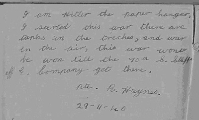 Message from R.Haynes, one of the regiment boys before he went to war.