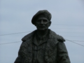 Statue of 'Monty' at Colleville-Montgomery, Calvados, France (close to 'Sword Beach'). In September 1944 Field Marshal Montgomery decorated Corporal Jim 'Marra' McGuinness with the Military Medal for his part in the attack on Merville Battery, D-Day 6 June 1944.