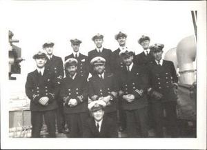 March, 1941, I was sent with three other CW candidates to do our minimum three months sea time aboard the Fleet minesweeper SPEEDY, a BRAMBLE class ship of some 1200 tons and about 110 of a crew. She had two 4" guns, two .5 machine guns, half a dozen depth charges for dropping over the stern, and nothing else. And yet she was sent out as a convoy escort on the Atlantic at a time when none of the escorts had radar and we didn't even have an asdic. We might as well have been blind and deaf. We took slow convoys bound for Newfoundland halfway across, because that was then the limit of U-boat operations, then joined up with an east bound convoy and brought it home. Highlight of this period was a narrow escape, I think in May, '41 when we were steaming west with 106 ships at 6 knots just south of the Denmark Strait, and the BISMARK came down through the Strait just 50 miles ahead of our bows. We heard about the sinking of the HOOD and RENOUN almost as soon as it happened and spent an anxious day scanning the horizon.