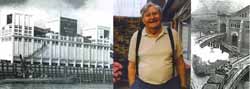 Bill Byford (Summer 1999), flanked on the right by the Beckton Gas works viaducts, and on the left by Becktons Thames riverside coke houses