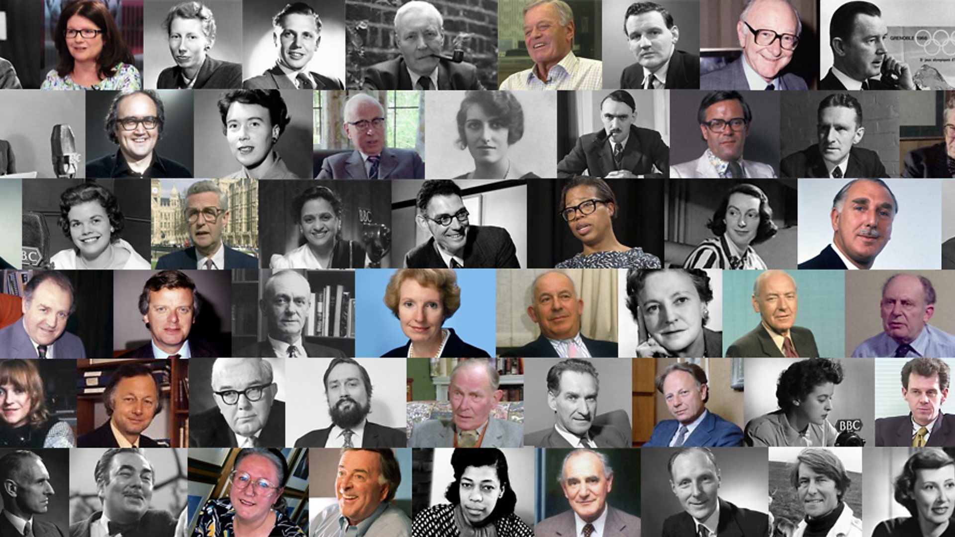 Below are the key people featured in the project, originally divided into eight collections: Entertaining the UK, The BBC and the Cold War, The BBC and World War Two, Pioneering Women, People, Nation, Empire, Radio Reinvented, The Birth of TV, and Elections.