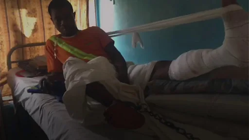 Otu nwoke nọ n'ụlọ ọgwụ Orthopedic Enugwu aha ya bụ Abraham Ani etiela mkpu sị ndị uwe ojii wepụ ya ịga ha kedoro ya n'ụkwụ n'ihi na ya abụghị onye IPOB.