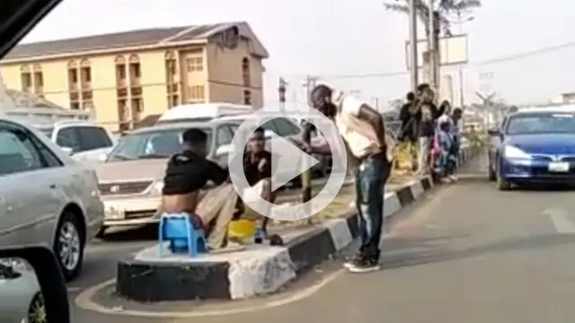 N'ime onyoonyo ahụ, e gosiri ebe ọ dịka ụmụ okorobịa ahụ ọ na-etinye aka na nsị ha na-etinye ya n'ọnụ ha, n'etiti okporoụzọ n'Owerri, Imo steeti..
