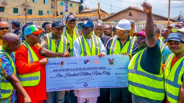 Gọvanọ Legọs steeti bụ Babajide Sanwo-Olu enyela ndị na-azụ ahịa n'ahịa ahụ ụgbọala nke Akere Motor PArts Market dị n'Olodi Apapa Legọs steeti nde otu narị naịra dịka ego iti kaka n'obi.