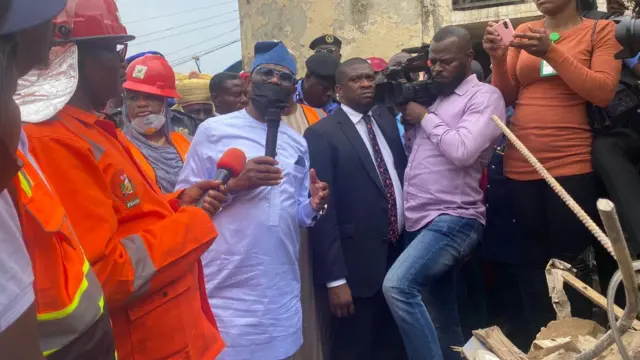 Ihe Mịnịsta FCT, Nyesom Wike kwuru dịka ọ gara hụ ebe ụlọ dara ada na Garki, Abuja