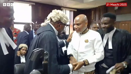Nnamdi Kanu bụ onyendu otu chọrọ nnwereonwe ha na Naịjirịa bụ Indigenous People of Biafra (IPOB) ga-awuchi n'ụlọikpe Ukwu dị n'Abuja taa bụ Fraịde 21 Maachị, 2025 maka ikpe dị n'etiti ya na gọọmentị Naịjirịa.