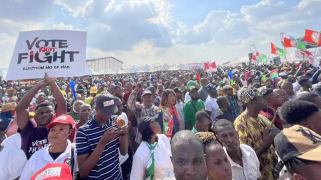 Omụmaatụ, akụkọ pụtara n'ọnwa Ọktoba 2022, etu ndị uweojii si were anwụrụ ose chụsaa ndị nkwado Labour pati na-eme ngagharị nkwado maka Peter Obi n'Abakiliki.