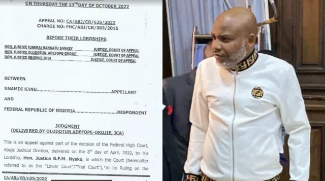 Cheta na ụbọchị Tọzde 13 Ọktoba, 2022 ka ụlọikpe mkpegharị nọ n'Abuja kachapụrụ ebubo niile nke Gọọmentị Naijiria boro Kanu.