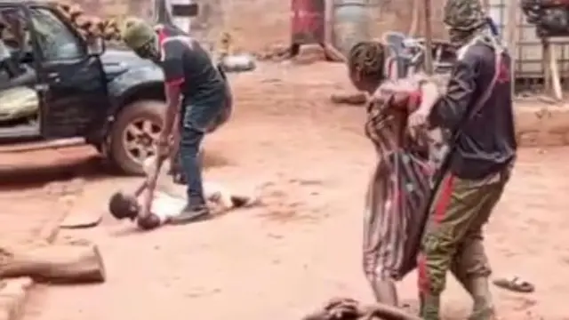 Ndị mmadụ na-arụ aka na ọ bụ ndị ọrụ nchekwa 'vigilantee' bịara nwuchie nwata a n'ihu nne na nna ya.