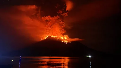 Gunung Ruang di Pulau Ruang, Kabupaten Kepulauan Sitaro, Sulawesi Utara, kembali meletus dan mengeluarkan kolom erupsi hingga 5.000 meter. Pakar memperingatkan bahwa erupsi bisa memicu tsunami ke dua arah.