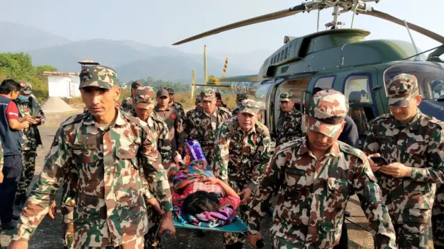 Pasukan keamanan telah dikerahkan untuk membantu upaya penyelamatan di Distrik Jajarkot dan Rukum Barat, sekitar 500 km di barat Kathmandu. Distrik ini berpenduduk 190.000 jiwa dengan desa-desa yang tersebar di perbukitan terpencil.
