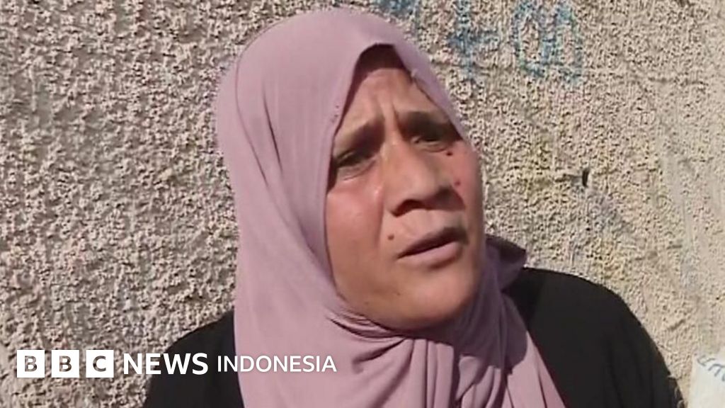Seorang perempuan paruh baya mencerca dunia saat mengantre gas untuk memasak di Gaza.