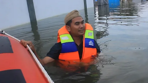 Seorang warga yang terdampak, Hasan, bercerita saat tanggul jebol rumahnya langsung diterjang banjir keesokan harinya.