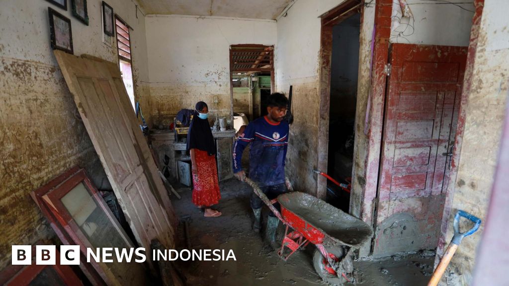 Dari foto dan video yang dibagikan Amalia kepada BBC News Indonesia, di sisi kanan-kiri jalan area rumahnya masih teronggok lumpur tebal yang melumat kayu-kayu berukuran kecil hingga besar.
