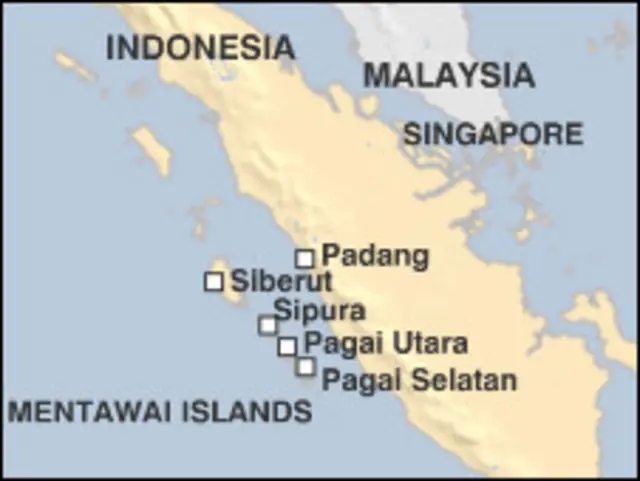 Malindas Salaleubaja, relawan yang berbicara berbicara kepada BBC dari Pulau Sikakap Utara, mengatakan dia melihat sebuah desa kecil ''tersapu habis'' oleh gelombang pasang.