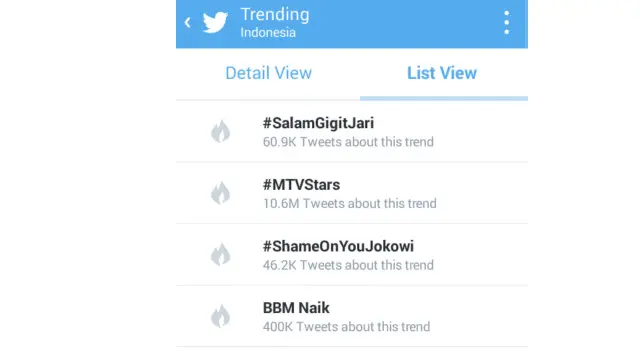 Tagar #SalamGigitJari dan BBM Naik menembus Trending Topic atau topik yang banyak dibicarakan oleh pengguna sosial media di dunia.