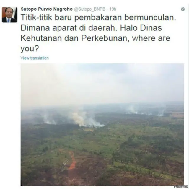 Dalam akun Twitternya, Kepala Pusat Data Informasi dan Humas BNPB, Sutopo Purwo Nugroho, mengatakan upaya pemadaman terus berlangsung. Namun, Sutopo menyiratkan kendala yang dihadapinya.
