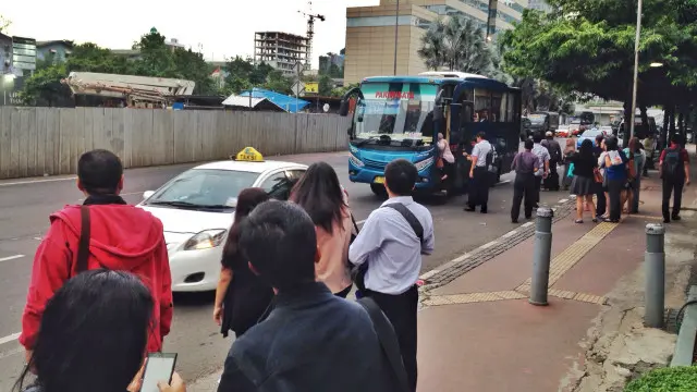 Jalanan di depan Sarinah malah sangat padat dengan kendaraan. Tidak hanya itu manusia pun memenuhi jalanan di depan pusat perbelanjaan tertua di Jakarta itu. Malah lebih ramai dari hari biasanya.