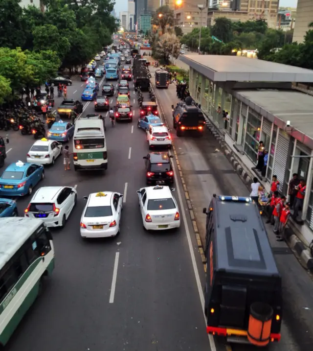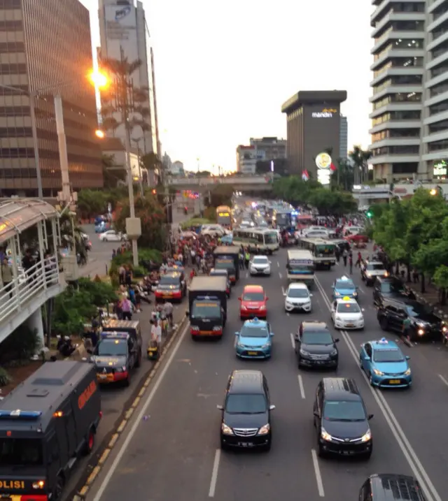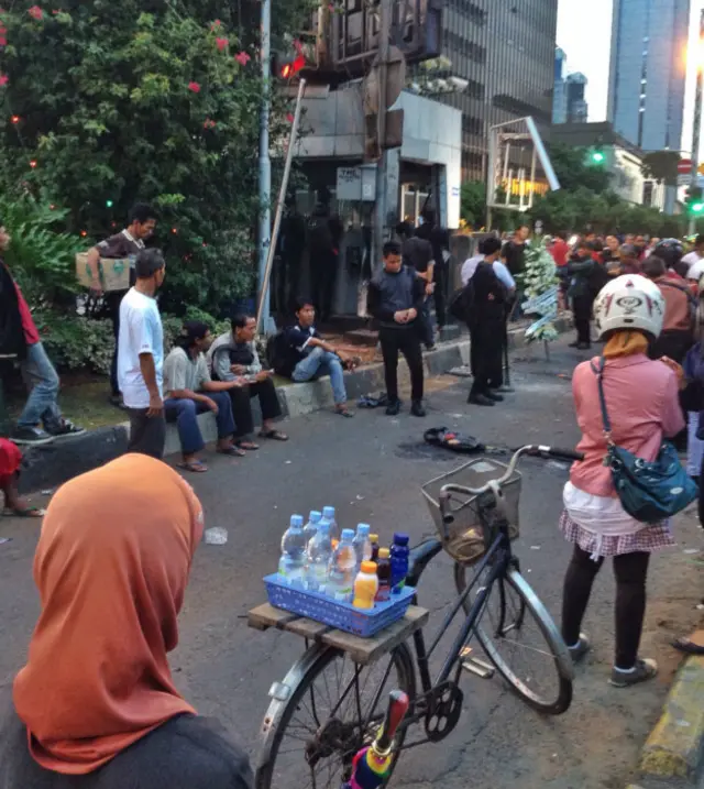 Jakarta terasa berbeda pada sore hari setelah serangan teroris di kawasan Sarinah, Thamrin, Jakarta Pusat -seperti direkam wartawan BBC Rafki Hidayat.