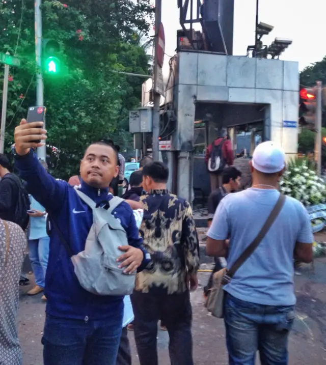 Keramaian bahkan berpusat di pos polisi Sarinah, tempat dua pelaku meledakkan diri.