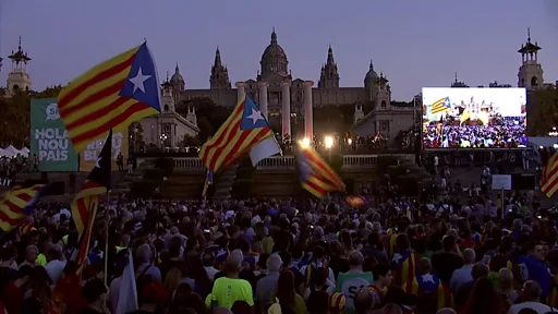 Dia dan pendahulunya, Artur Mas, kemudian tiba dalam mimbar bebasdi Barcelona di panggung yang dihiasi dengan kata-kata "Referendum adalah democrasi" dengan huruf-huruf raksasa.