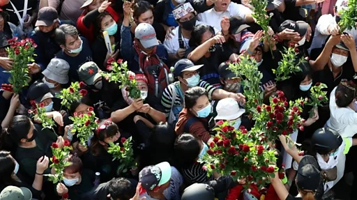 Mobil itu melewati massa yang meneriakkan yel-yel dan mengangkat salam tiga jari. Salam tersebut diyakini terinspirasi oleh film-film Hunger Games, yang menggunakan salam itu sebagai simbol persatuan dan penentangan.