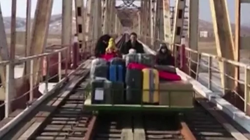 Mereka melintasi perbatasan menggunakan troli yang harus didorong secara manual menyusuri jalur kereta api karena Korut memperketat wilayah mereka selama pandemi Covid-19.