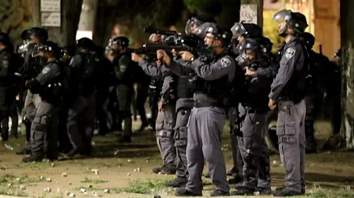 Kepolisian Israel mengatakan ribuan warga Palestina membarikade diri di dalam masjid pada Minggu malam (09/05), bersenjatakan bom molotov dan batu.