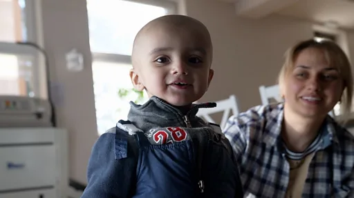 Pavlo, berusia 18 bulan dan menderita kanker tulang, tengah bermain dengan gembira setelah melewati perjalanan tahap pertamanya.