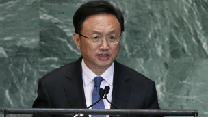 Menteri Luar Negeri Cina Yang Jiechi memberikan pernyataan saat dia memberikan pidato di Sidang Umum PBB.