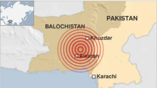 Gempa berlangsung sekitar pukul 16:29 waktu setempat. Badan Geologi AS menyebut pusat gempa terletak di 66km timur laut Awaran di provinsi Balochistan, dengan kedalaman 20km.