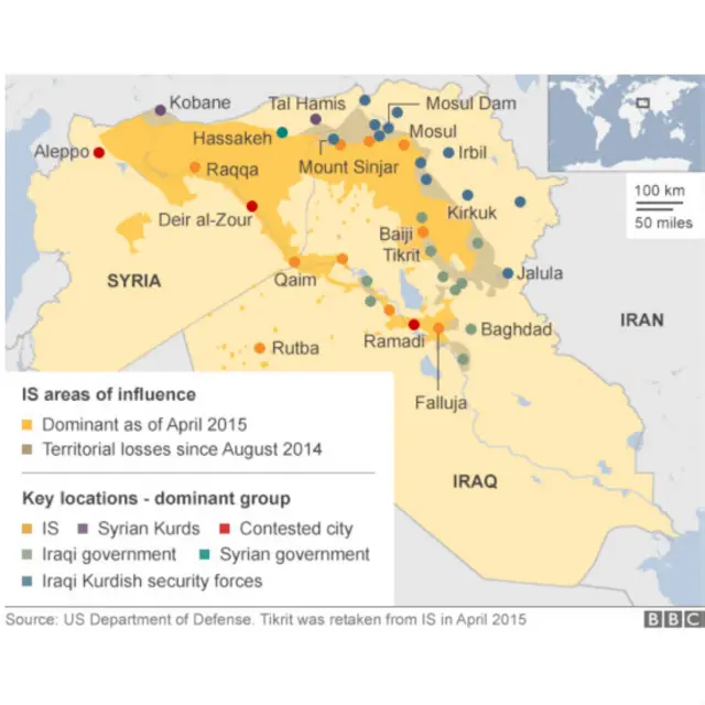Bulan lalu, lokasi pertahanan ISIS melebar ke <link type="page"><caption> Ramadi, ibu kota Provinsi Anbar di Irak</caption><url href="http://www.bbc.com/indonesia/dunia/2015/05/150524_dunia_ramadi_isis" platform="highweb"/></link>, serta <link type="page"><caption> Kota Palmyra di Suriah</caption><url href="http://www.bbc.com/indonesia/dunia/2015/05/150521_dunia_isis_palmyra" platform="highweb"/></link>.