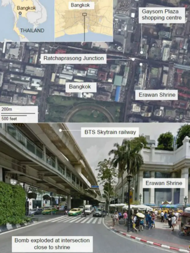 Kepala Kepolisian Thailand mengatakan ledakan di Kuil Erawan berasal dari bom pipa. Bom tersebut diletakkan di dalam kuil. Sejumlah laporan media di Thailand menyebutkan bom menggunakan bahan TNT sebanyak tiga kilogram.
