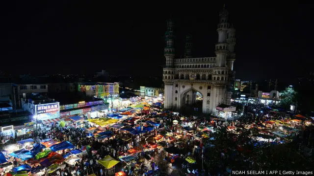 Umat muslim India memadati pasar tradisional di Kota Hyderabad pada hari terakhir Ramadan, pada Selasa (05/07).