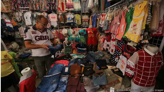 Seorang pedagang pakaian di Pasar Shorja, Kota Baghdad, Irak, menunggu pelanggan pada hari terakhir Ramadan, pada Selasa (05/07). Menurutnya, bisnis melemah akibat serangan yang menewaskan ratusan orang pada akhir pekan lalu.