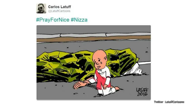 Karya ilustrasi kartunis Brasil, Carlos Latuff, yang terinspirasi foto tersebut, juga dibagikan ribuan kali di Twitter.