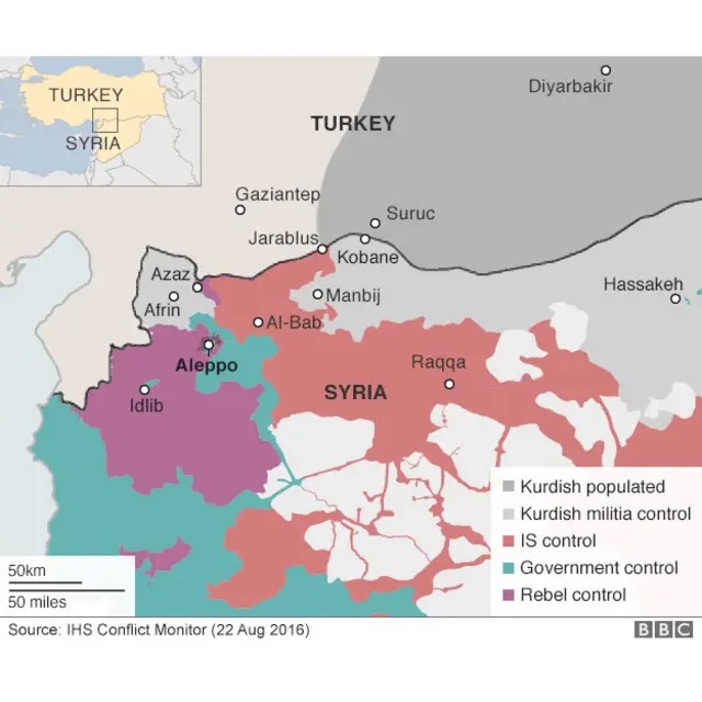 Pemerintah Turki berkata tujuan mereka mendorong baik kelompok yang menamakan diri mereka Negara Islam dan pejuang Kurdi untuk menjauh dari perbatasan mereka.