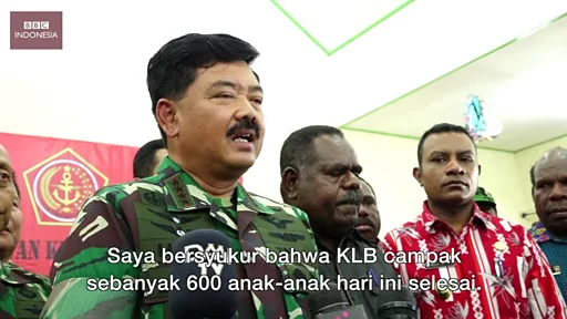 Menurut Panglima, KLB campak yang menyerang sekitar 600 anak di wilayah Asmat telah berhasil diobati, seperti dilaporkan wartawan BBC Indonesia Heyder Affan dan Dwiki Marta dari kota Agats.