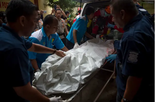Ke-37 kantung jenazah itu dikirim ke RS Polri Kramat Jati, kata Nugroho, "Namun, 37 kantung jenazah itu bukan berati 37 orang korban, karena merupakan bagian-bagian tubuh saja, yang masih harus diidentifikasi," katanya.