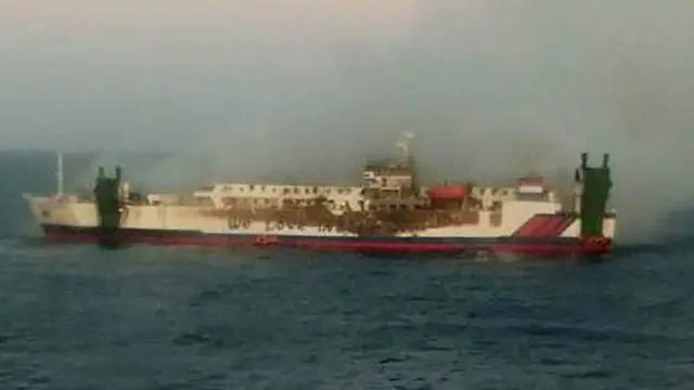 "Karena masih ada beberapa kendaraan (penumpang) di atas kapal, mungkin karena masih belum terbakar," ujarnya melalui sambungan telepon dengan BBC News Indonesia.