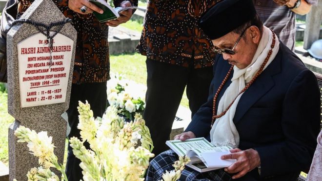 Bacharuddin Jusuf Habibie, presiden RI ketiga, yang antara lain dianggap berhasil melembagakan demokrasi di Indonesia, dimakamkan di Taman Makam Pahlawan Kalibata, Jakarta, pada Kamis (12/09). Habibie meninggal dunia Rabu (11/09) pada usia 83 tahun.