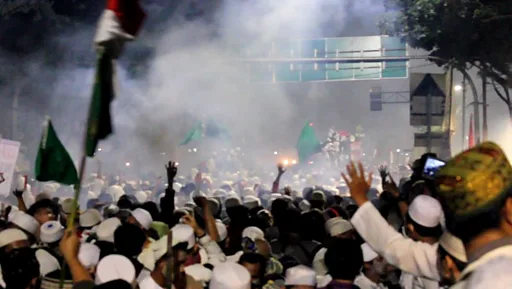 Di kejauhan percikan-percikan ledakan gas air mata masih tampak dan terdengar.